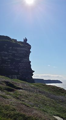 Which brings me to the Cliffs of Moher, located in the spectacularly rugged and ecologically unique Burren region of Ireland. Like a subliminal siren song, one is drawn to scale the cliffs in all conditions, despite all warnings,12033114_1085010701510840_2244835648431244686_n[1] when a fall into the ocean is but a wind gust away. I snapped this photo during my climb of the couple ahead of me. 11988540_1079967272015183_8188211945216934463_n[1]